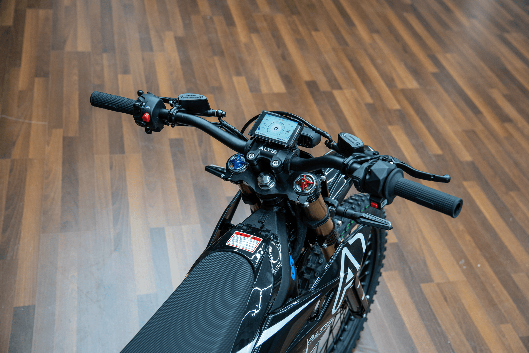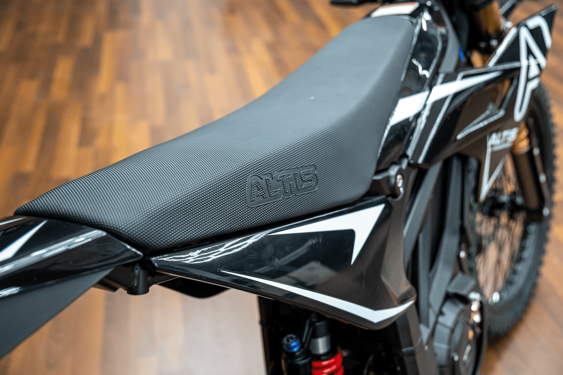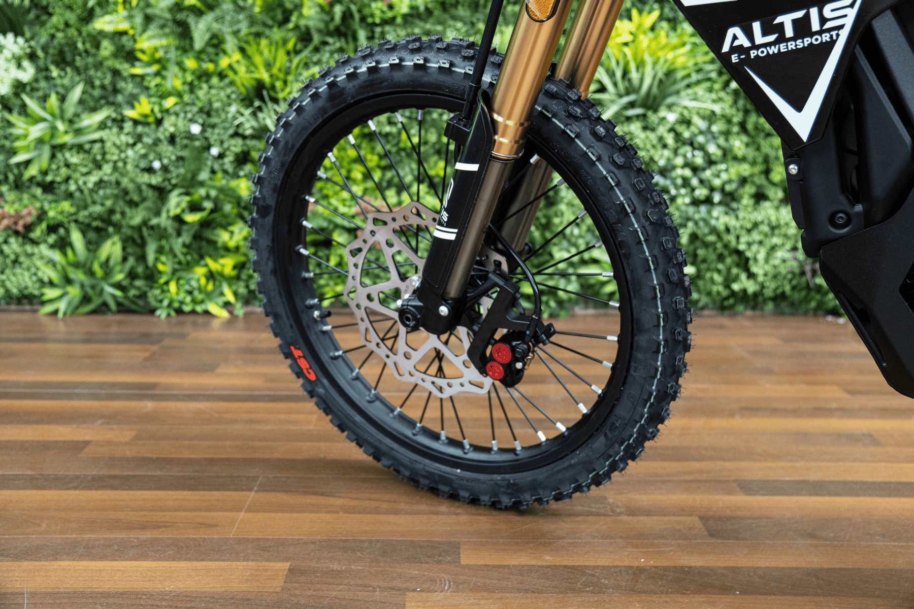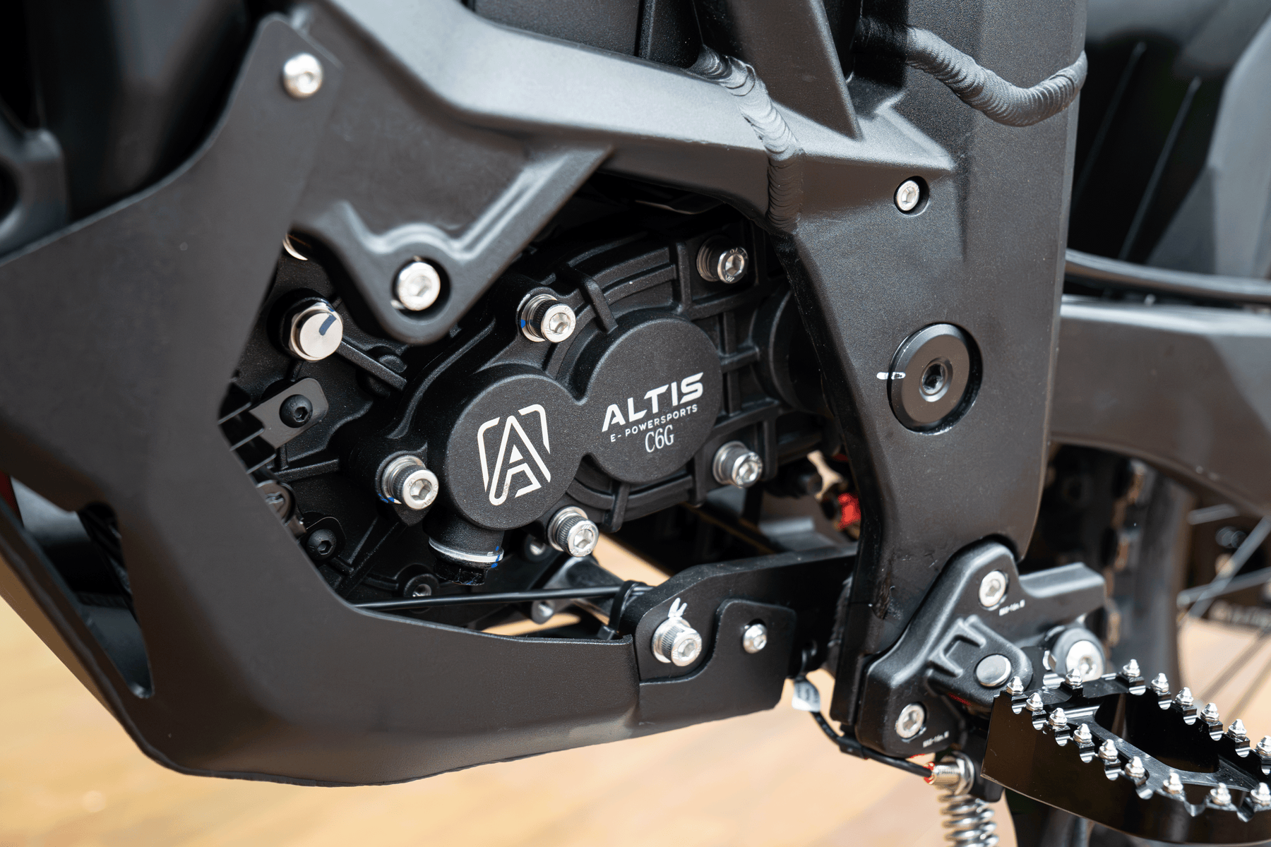 Das Fahrwerk der ALTIS SIGMA ist für Offroad optimiert. Es verfügt über eine verstellbare Luftfederung mit 200 mm Federweg vorne und 85 mm hinten. Die Speichenräder mit Aluminiumfelgen (19" vorne, 16" hinten) bieten gute Traktion und Stabilität. Mit einem Radstand von 1285 mm, einem Lenkwinkel von 26° und 300 mm Bodenfreiheit gewährleistet das leichte Aluminiumchassis Agilität und Robustheit im Gelände.