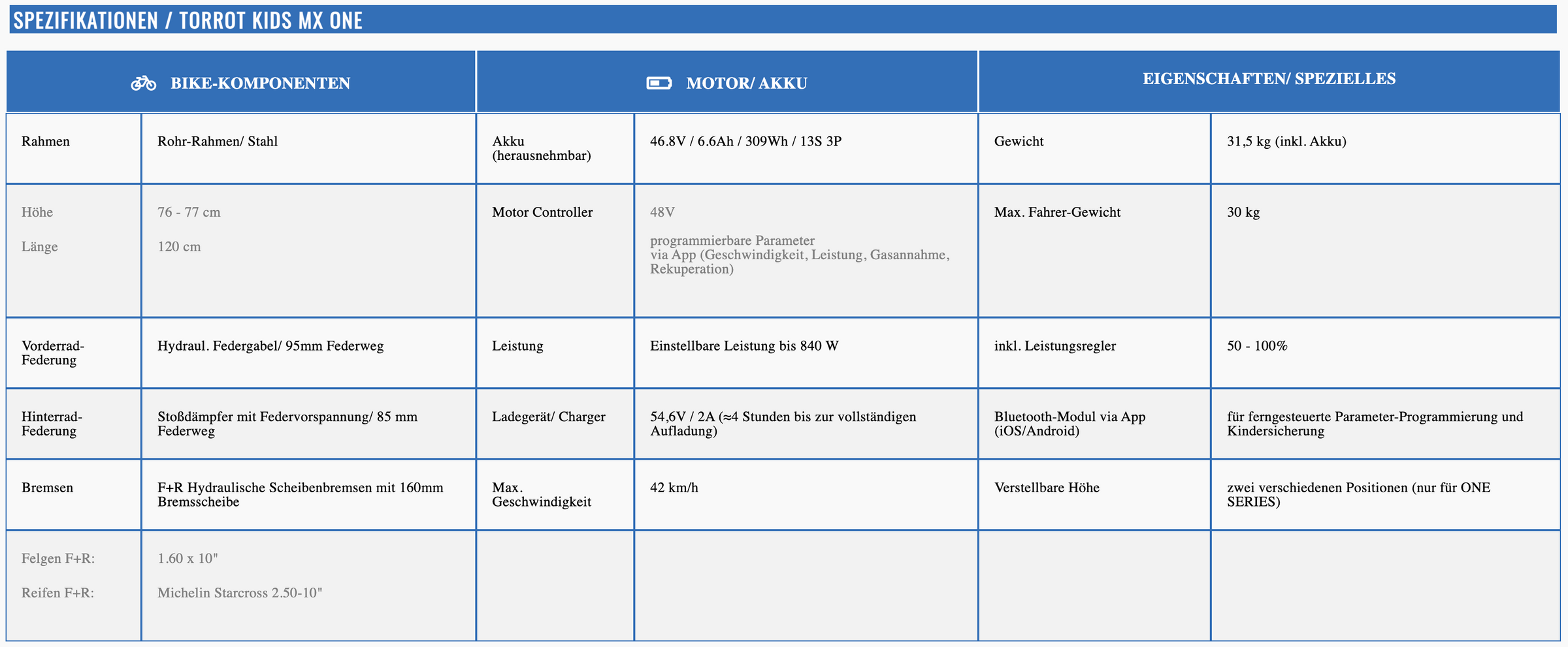 Mit der KIDS-App kannst du verschiedene Parameter des Motorrads, wie Geschwindigkeit, Leistung, Gasannahme und Rekuperation einstellen, das Verhalten des Motorrads an die Fähigkeiten des Fahrers anpassen und das Interessanteste für die Eltern: die elterliche Kontrolle. Eine drahtlose Steuerung, die es den Eltern ermöglicht, das Motorrad aus der Ferne über ihr Smartphone zu begrenzen, zu konfigurieren und sogar sicher abzuschalten. Die App, die TORROT für seine elektrischen KIDS-Bikes entwickelt hat, ist für Android- und iOS-Geräte verfügbar.